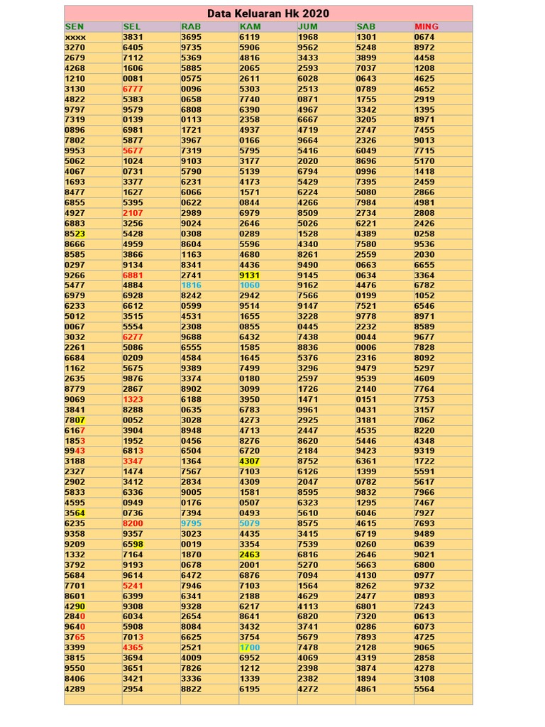 Rekap data hk 4d harian pengeluaran hk lengkap dan terupdate yang kami urutkan sejak result keluaran hk terlengkap. Kita juga mempunyai paito hk versi data yang di update setiap hari mengikuti keluaran hk pools, data hk ini result di jam 23.00 wib. Kami penyedia paito warna selalu memberikan yang terbaik untuk. Situs keluaran hk adalah rekap hasil keluaran hk pools tercepat hari ini menggunakan table paito berwarna, data keluaran hk atau biasanya disebut pengeluaran hk ini merupakan rujukan hasil. Hasil pengeluaran hongkong 6d 2018 sampai 2021, data keluaran hongkong 6d dari tahun 2018. Toto hk menjadi salah satu hal yang penting untuk sekarang ini. Klik konten yang ada di artikel ini Data hk 6d / paito hongkong 6digit. Di atas ini telah kami tayangkan tabel data keluaran hk 2021 di tahun ini. Data hk adalah rekapan hasil pengeluaran hk dan keluaran hk hari ini, setiap hasil keluaran hk akan terus di catat dari hari ke hari kedalam tebal data hk 2021. Update setiap hari dan setiap result. Dan tidak akan terlambat dan keluar sesuai jam nya 23:00 wib. Pengeluaran hk atau biasa disebut juga dengan keluaran hongkong adalah hasil rekapan dari result juga telah kami lengkapi dengan fitur rekapan data hk yang berbentuk teks sederhana yang lebih.
